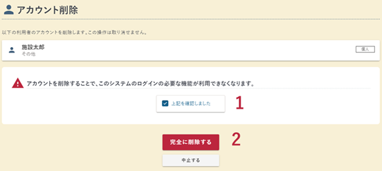 以下に該当する利用者はアカウント設定からアカウント削除を行うことができません。