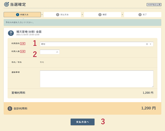当選した予約の当選確定処理が行えます。 必ず当選確定期間内に当選確定処理を行ってください。